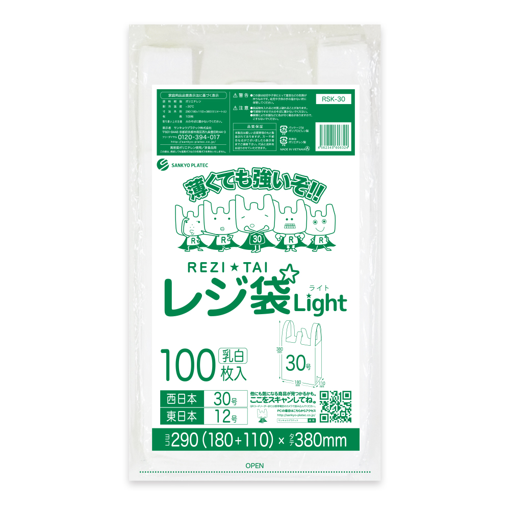 レジ袋 ブロック有 西日本30号(東日本12号) 薄手 乳白