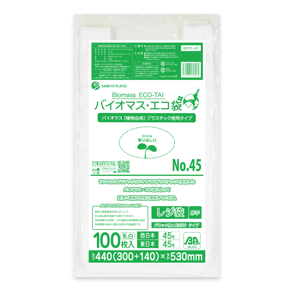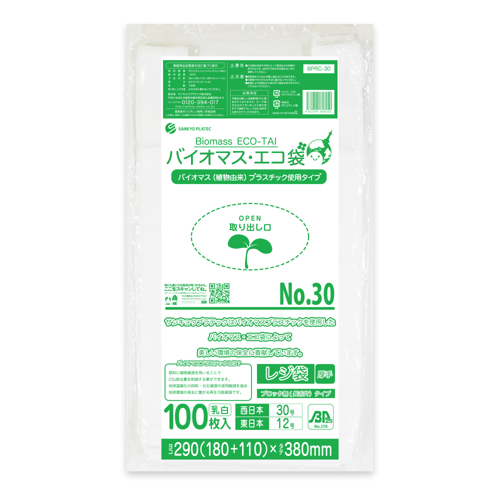 バイオマスレジ袋【ブロック無(長舌片) / 乳白色】